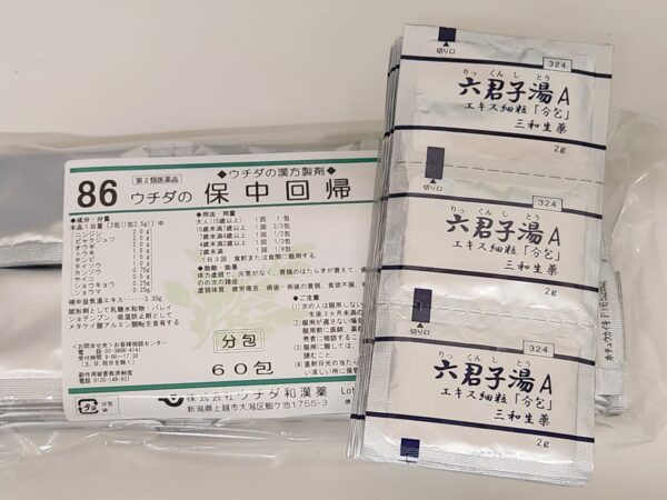 効能効果:体力中等度以下で、胃腸が弱く、食欲がなく、みぞおちがつかえ、疲れやすく、貧血性で手足が冷えやすいものの次の諸症:胃炎、胃腸虚弱、胃下垂、消化不良、食欲不振、胃痛、嘔吐